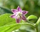 Now here's something different. Sometimes known as the Tree Chile or Rocoto, this rare and unusual pepper is unique - it has fuzzy leaves, beautiful purple flowers, and - believe it or not - black seeds. Huge numbers of pretty, 1.5" pendant fruit with thick flesh slowly go from green to deep red, on large bushes about 2 to 3ft across. We grow it as an annual pepper in the usual fashion, and get lots of ripe fruit in October.