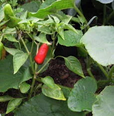 From Nigel Green of Halesworth, Suffolk, this chilli really will tolerate growing outside. We were sceptical, but it does ripen outdoors with no protection even in Wales. The picture is from our back garden- it has ripened properly red despite being swamped by a squash plant.