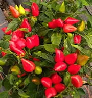 A large tasty chilli, with upright clusters of pointy 2-3 inch peppers, on bushes about 1ft wide and high.