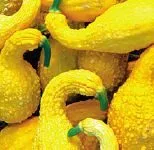 This is an amazing knobbly yellow squash, with bulbous fruit and a curved neck (hence the name). Although botanically a 'squash' it is always picked early, sliced whole, & used just like a courgette - with a great nutty flavour. We think that it is tastier than courgettes though - firmer fleshed and better flavoured!