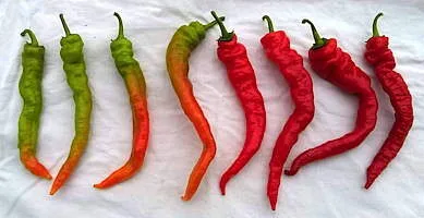 This new addition is a wonderful chilli – a quick-growing and really productive variety. Quite large bushes a couple of feet tall, making large (5 inches long) fantastic wrinkled, crinkly twisted fruits ripening from lime green to cherry-red.