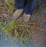 Putting the lot in a bucket and tapping it works well too – the bigger bits rise to the surface and can be picked out. Just be patient. You need to get out any big bits simply so it dries well. Large bits of stem or leaf never dry properly, and are an invitation to damp and mould in storage.