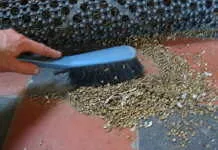 Once dry, jump all over them and you’ll get lots of seed mixed with broken up stem & pods. For things like oats and chard that have tough glumes or are well-attached to the stems, a great trick is to stomp and stamp it on a rubber mat. The rubber grips the plant material but is soft enough to stop the seeds being damaged.